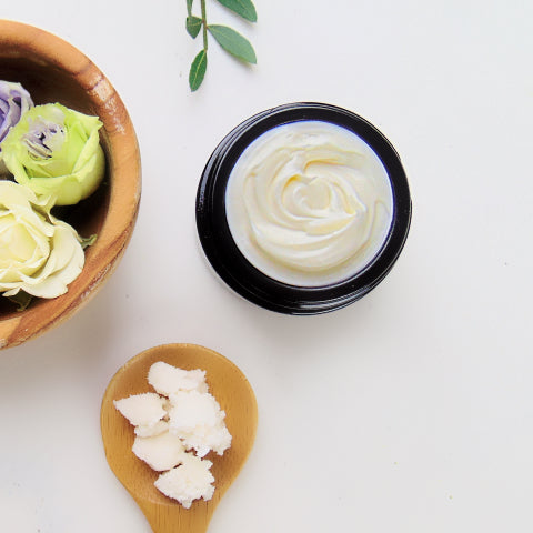 • Purified water*, Rose hydrosol*, Vegetal E wax, Shea Butter*, Olive Oil*, Olive Squalene, Hyaluronic Acid (naturally derived), Cranberry seed oil*, Aloe*, Macadamia nut oil*, Avocado oil*, Calendula Oil*, Meadowfoam Oil, Viola (Pansy) extract , Rosehip seed oil*, Tahitian Monoi,  Essences of Rose*, Vanilla*, Jasmine and Lemon* (non photo toxic), Grapefruit seed extract*